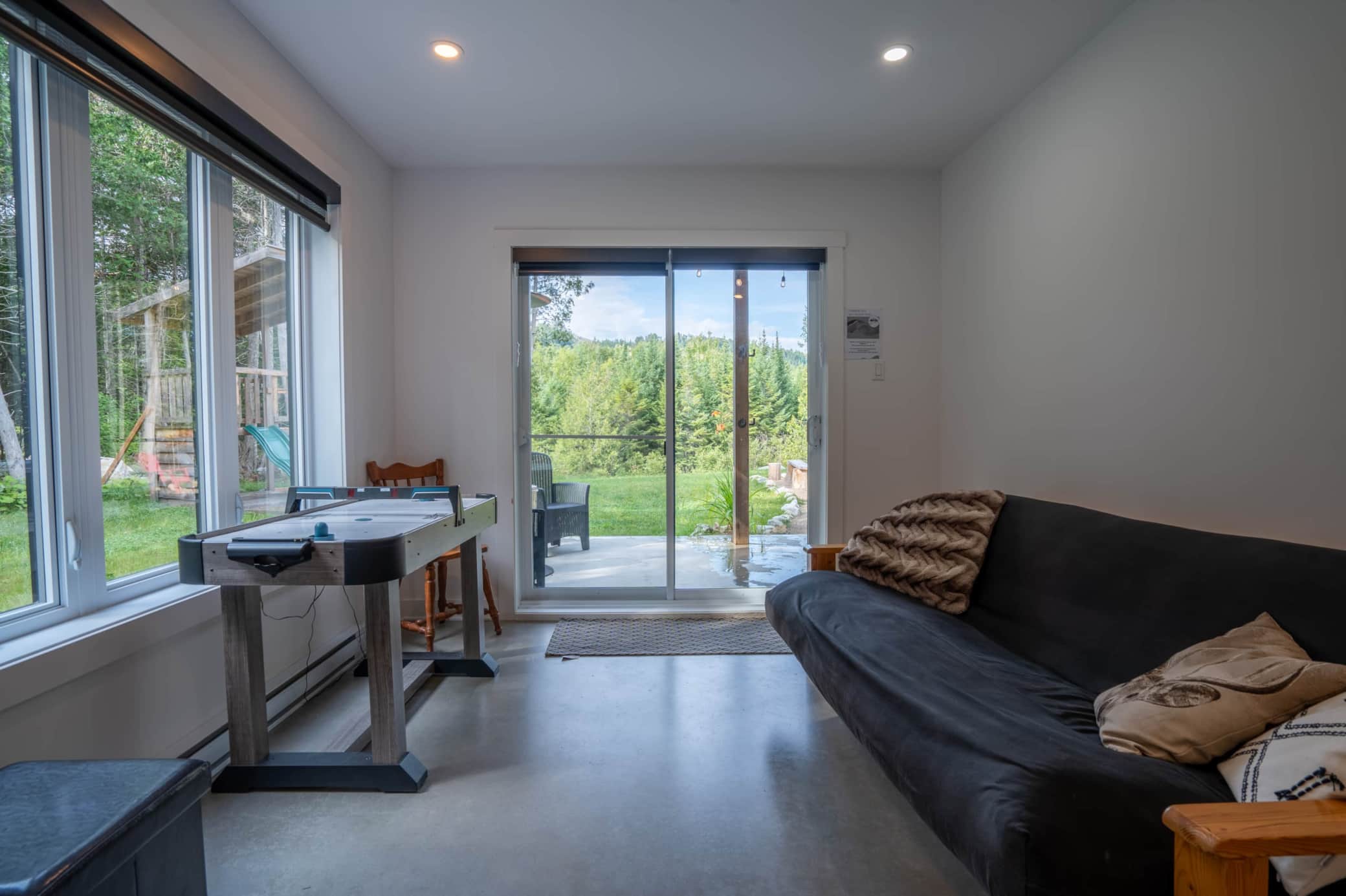 Un chaleureux chalet familial situé à Saint-Côme, au cœur de la magnifique région de Lanaudière, reconnue pour ses paysages grandioses et ses activités quatre saisons. Conçu pour accueillir jusqu’à 8 personnes, le Chalet Aventura est l’endroit parfait pour partager des moments inoubliables en famille ou entre amis. Que ce soit pour dévaler les pistes de Val Saint-Côme en hiver, profiter des sentiers et des chutes en été, ou simplement relaxer dans le spa privé face à la nature, chaque séjour devient une véritable parenthèse de bonheur. Ici, confort moderne et ambiance chaleureuse se marient pour vous offrir un refuge unique où créer vos plus beaux souvenirs, peu importe la saison.
